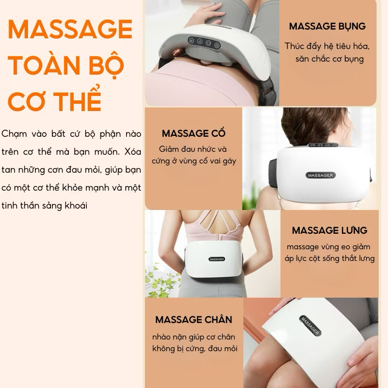 Sản phẩm được sử dụng ở rất nhiều vị trí, vùng trên cơ thể như: bụng, lưng, vai, chân,... giúp hỗ trợ giảm đau mỏi, massage sâu kèm massage nhiệt mang lại cảm giác thoải mái, dễ chịu cho người dùng.