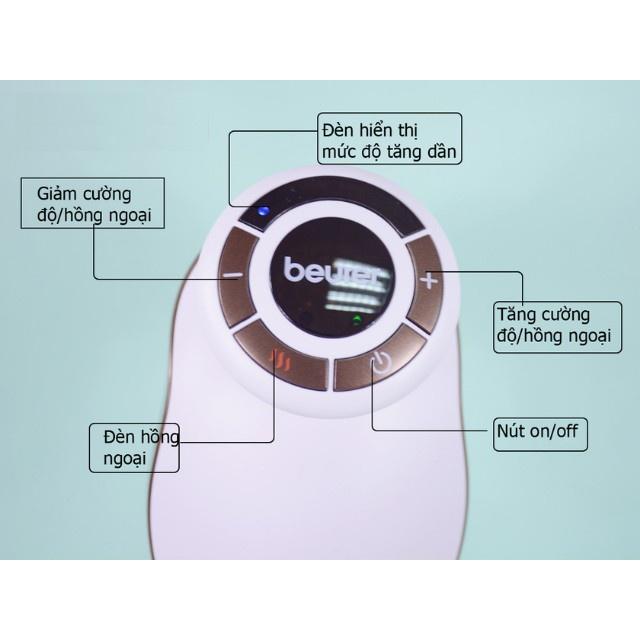 - Trên thân máy có 4 phím: nguồn, tăng giảm cường độ và nút chọn chức năng hồng ngoại. Bạn chỉ cần ấn nhẹ là máy có thể sử dụng.