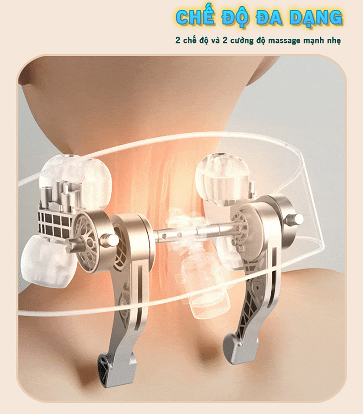 • 2 chế độ và 2 cường độ massage tùy chỉnh