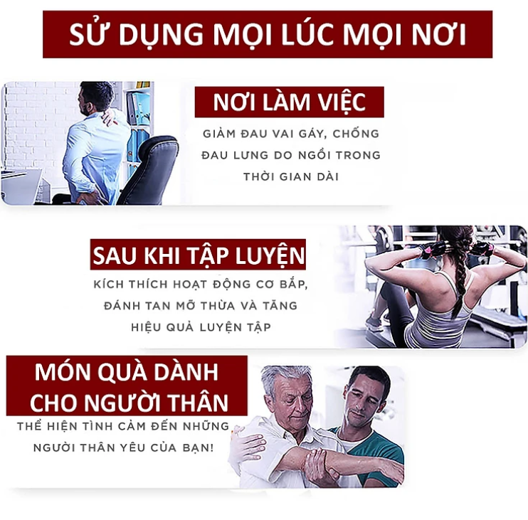 CÔNG DỤNG - Đánh tan mỡ thừa, kích thích vùng cơ hiệu quả tập luyện + Thư giãn cơ thể + Hồi phục sau tập + Tăng độ bền cho cơ + Cải thiện thể