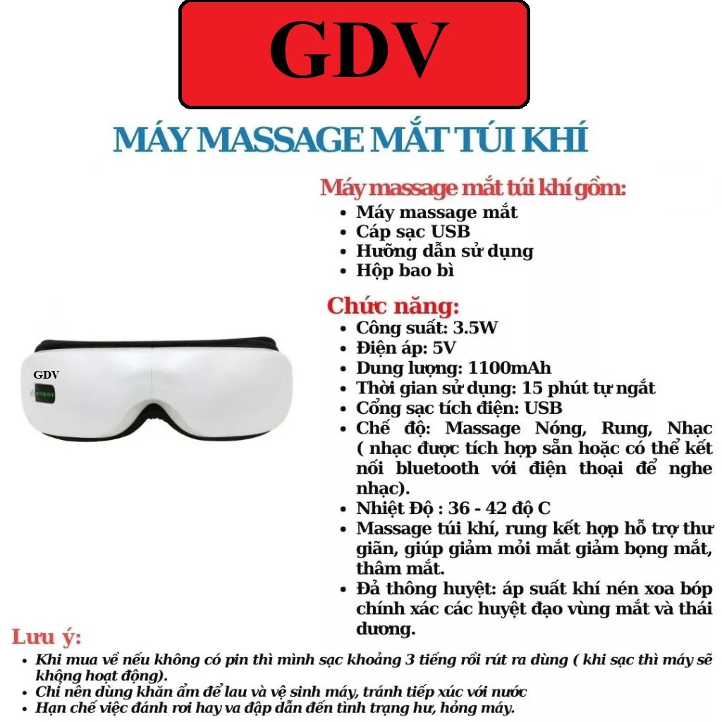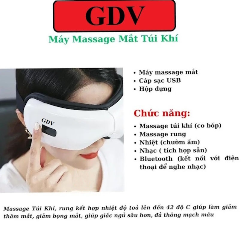 Máy Massage Mắt GDV Kết Hợp Chế Độ Rung Kết Nối Bluetooth, Làm Giảm Căng Thẳng Mệt Mỏi Và Lưu Thông Máu Cho Mắt - Hàng Chính Hãng công nghệ khí nén, Giảm quầng thâm,