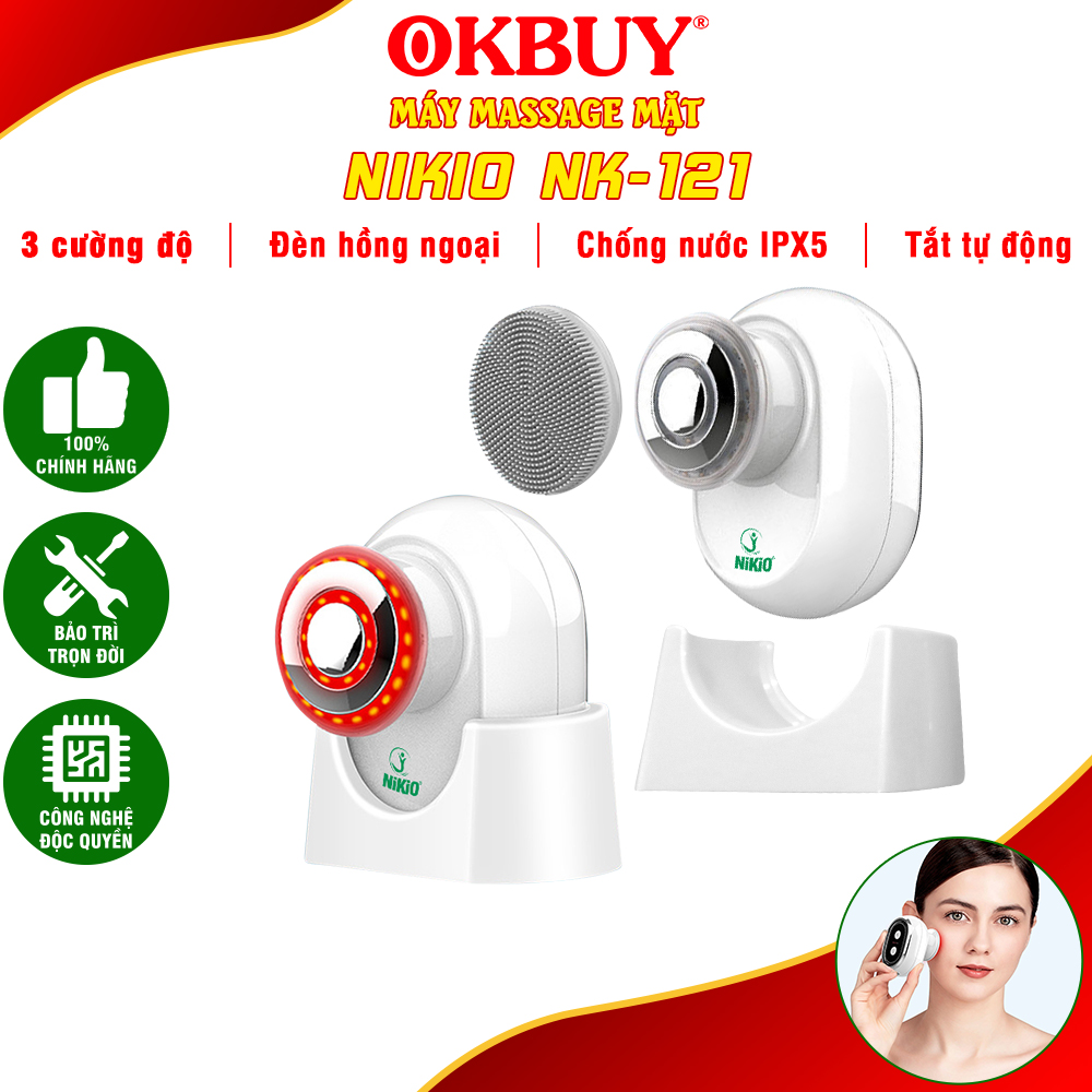 Máy massage nâng cơ điện di tinh chất kết hợp rửa mặt Nikio NK-121 Máy massage nâng cơ điện di tinh chất kết hợp rửa mặt Nikio NK-121 là thiết bị chăm sóc da được nhiều chị em phụ nữ yêu thích. Với sự kết hợp hài hòa giữa chức năng rung, hồng ngoại, RF, EMS và làm sạch da, máy massage nâng cơ điện di tinh chất kết hợp rửa mặt Nikio NK-121 mang lại một trải nghiệm toàn diện cho việc chăm sóc da và nâng cơ tại nhà. Chăm chỉ sử dụng, bạn sẽ có một làn da tươi trẻ, mịn màng và săn chắc mà không cần đến spa hay viện thẩm mỹ. Đặc điểm nổi bật của máy massage nâng cơ điện di tinh chất kết hợp rửa mặt Nikio NK-121: