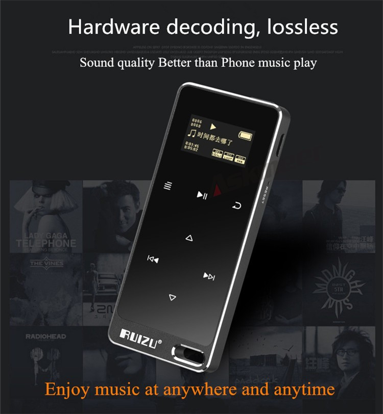 MÁY NGHE NHẠC BLUETOOTH MP3 RUIZU D29 BỘ NHỚ TRONG 8GB - VIỀN CẮT CNC ĐIỀU KHIỂN CẢM ỨNG - HÀNG CHÍNH HÃNG   D29 Được trang bị bộ DAC giải mã âm thanh công