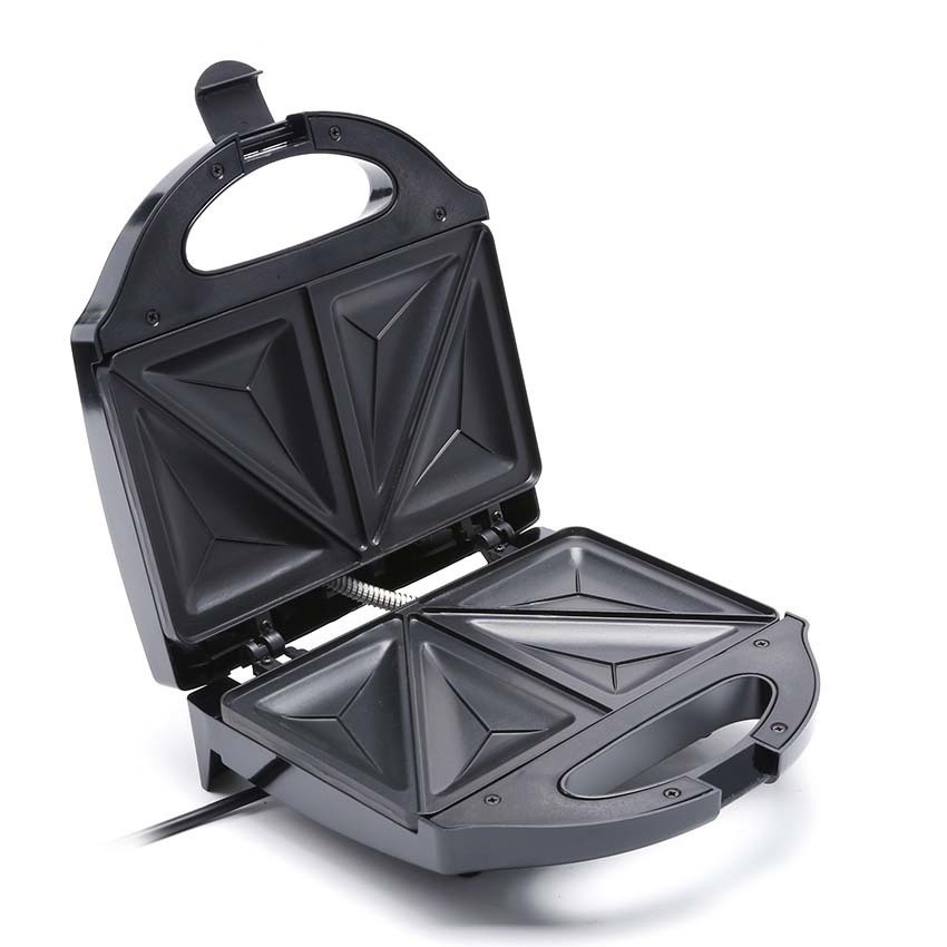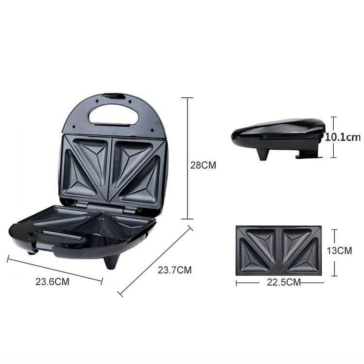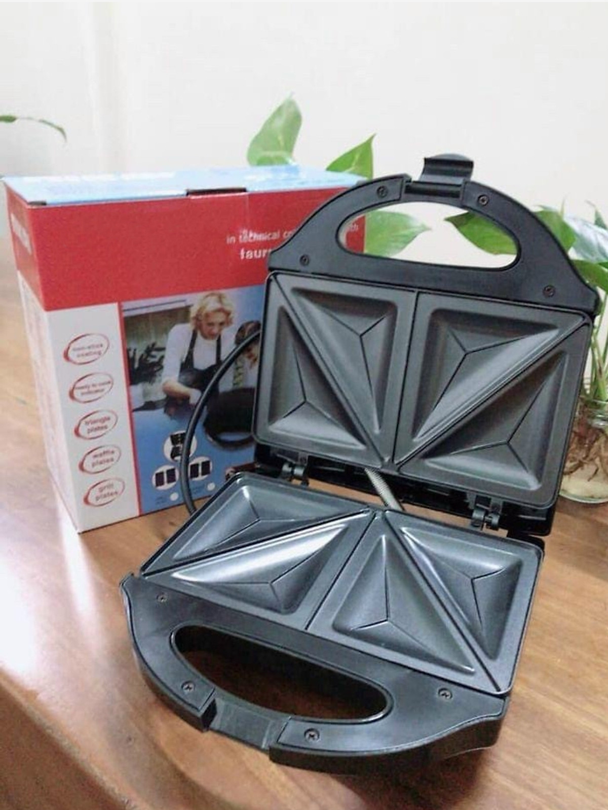 Máy Nướng Bánh Mì Sandwich Máy Kẹp Bánh Mì Cho Bữa Sáng Đa Năng Dễ Sử Dụng  Máy nướng bánh ngon tuyệt với máy nướng bánh, giúp bạn có một mẻ 4 chiếc sandwich tam giác vàng rộm, đẹp tuyệt chỉ trong 3 phút THÔNG TIN SẢN PHẨM ✧ Công suất : 700W ✧ Màu sắc: Màu đen ✧ Chất liệu: Khung nướng bánh tráng men chống dính ✧Thiết kế : Sang trọng hiện đại màu sắc trang nhã ✧ Công suất 700W ✧ Nướng bánh nhanh ✧ Có khóa an toàn ✧ Chất liệu cao cấp chịu nhiệt ✧ Bộ sản phẩm bao gồm: 01 x Máy nướng bánh 01 x Phiếu bảo hành 01 x Hộp đựng sản phẩm ✧ Xuất xứ: Chính hãng TÍNH NĂNG NỔI BẬT:  Máy nướng bánh mini  có hệ thống rơ le tự cảm biến nhiệt giúp nướng bánh chín chín đều, có màu vàng, không bị cháy. Thời gian để máy thực hiện nướng một mẻ bánh chỉ mất từ 5-7 phút. Khuôn bánh được chia làm 4 hình tam giác đều nhau, ứng với 4 bánh. Trên mỗi cạnh hình tam giác đều có các gờ kim loại nhỏ để tách riêng biệt từng bánh với nhau. Trong quá trình nướng sẽ có hiện tượng bánh tràn sang và dính nhau, song chỉ cần dùng kéo lướt nhẹ 1 đường là bánh sẽ tách rời nhau. Bánh không bị dính vào khuôn, rất dễ lấy ra. Trên khuôn bánh có hình họa tiết trang trí làm bánh trông ngon mắt hơn Tay cầm của máy có khóa chốt, giúp giữ hai nắp của khuôn bánh ép chặt vào nhau khi nướng. Máy có hai đèn báo chế độ nướng màu xanh và đỏ, khi máy sáng cả hai đèn là lúc máy thực hiện chế độ nướng, khi đèn đỏ tắt máy chuyển về chế độ ủ. Máy có hình thức nhỏ gọn, tiện sử dụng và dễ vệ sinh. LƯU Ý KHI SỬ DỤNG ✧ Thực hiện đúng hướng dẫn sử dụng. ✧ Nên pha bột và nước với tỉ lệ vừa phải, không loãng quá cũng không đặc quá, đánh bột thật nhuyễn trước khi cho vào khuôn.