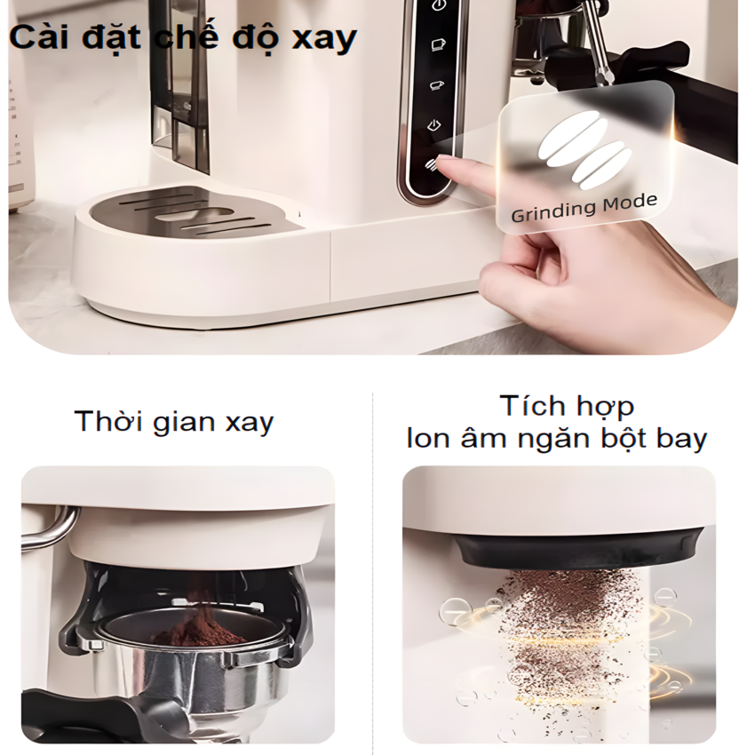 - Tiện ích xay và pha cà phê trên 1 sản phẩm (Pha 3 trong 1, xay 15 chế độ)