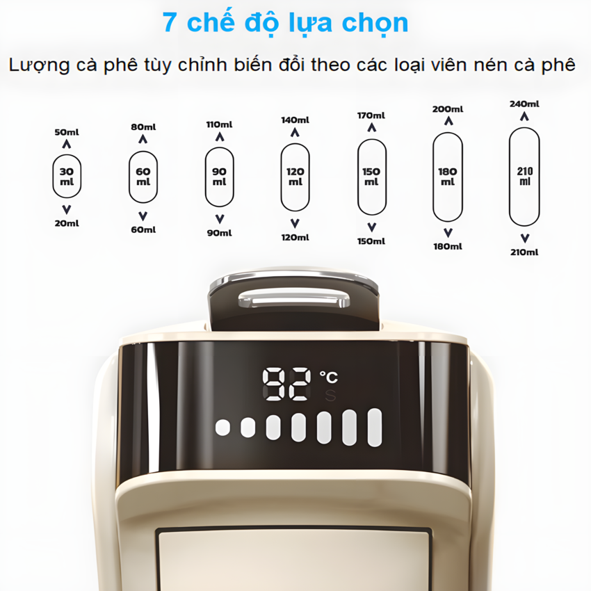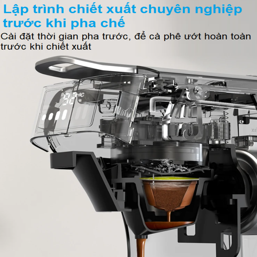 - Chức năng pha cà phê: Espresso, Viên Nén Nespresso, Nescafe Dolcegusto, Kcup, Túi ESE POD và Pha trà