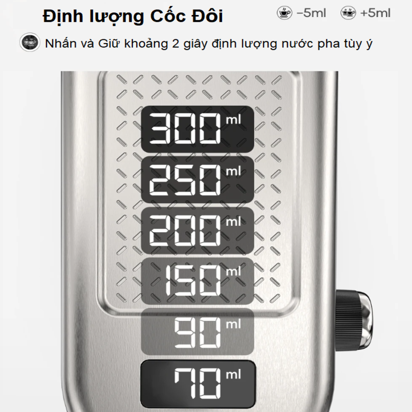 - Linh hoạt kiểm soát thời gian ủ cà phê 1~10 giây
