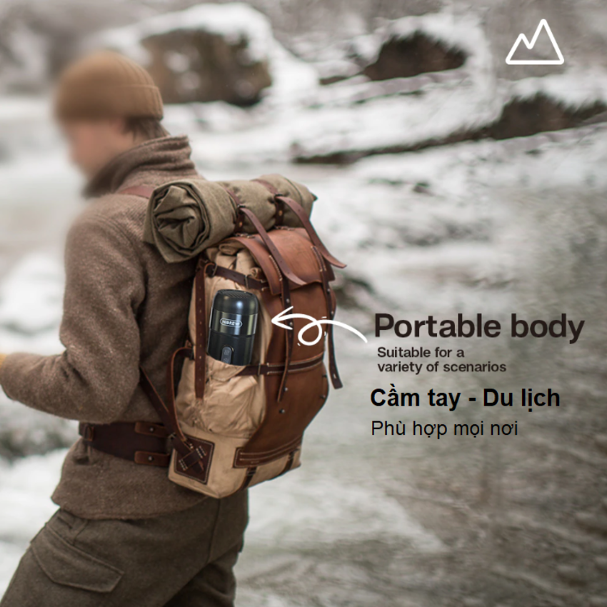 - Nhỏ gọn và nhẹ: Nhỏ và nhẹ đủ để trong vali hoặc ba lô. Có thể theo bạn đi khắp nơi, lên rừng, xuống biển, trèo dèo hay lội suối. Khi nào bạn muốn, chỉ cần ngồi xuống và tự pha cho mình 1 ly Espresso thôi.