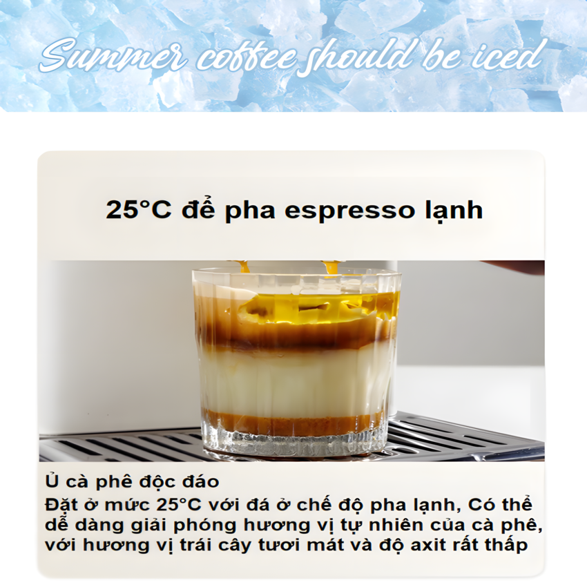 - Linh hoạt kiểm soát nhiệt độ pha chiết suất cà phê 90~95ºC