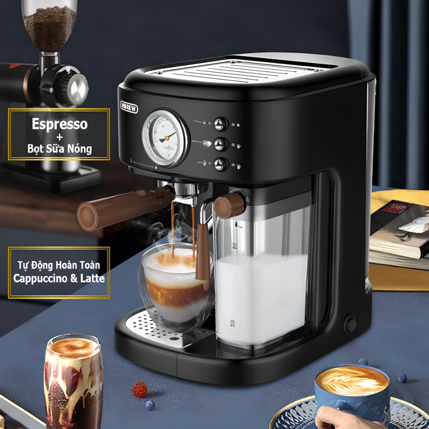 - Pha cà phê espresso, tạo bọt sữa và đồng hồ do nhiệt độ 3 trong 1