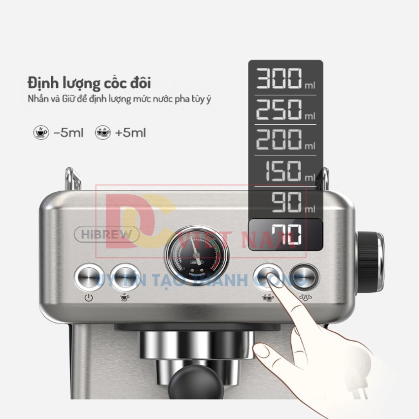- Tích hợp đồng hồ áp suất kiểm soát shot cafe espresso