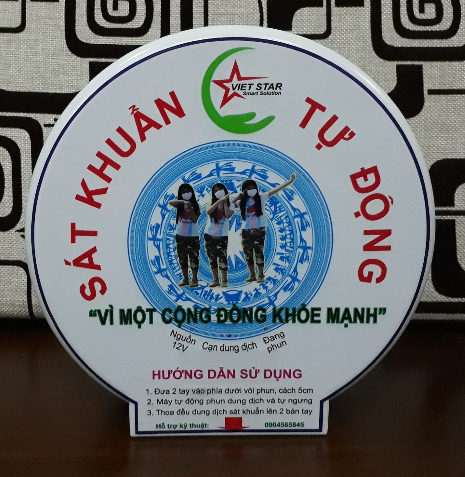 Máy phun dung dịch sát khuẩn hoàn toàn tự động, không chạm tránh lây nhiễm virus ở những nơi công cộng Thích hợp cho Bệnh viện, trường học, công sở, doanh nghiệp, cửa hàng. Chúng tôi có các model sau: Model MSK01-Std: Loại tiêu chuẩn, có chức năng phun dung dịch sát khuẩn tự động Model MSK01-Ado: Như loại tiêu chuẩn + thêm chức năng phát âm thanh, nhạc, câu "cảm ơn" Model MSK01-Bat: Như loại tiêu chuẩn + thêm chức năng có pin sạc dự phòng Model MSK01-Lux: Loại cao cấp nhất có đủ các chức như Model MSK01-Std + Model MSK01-Ado + Model MSK01-Bat Công suất: 10W khi hoạt động và 3w khi ở chế độ chờ Thời gian phun: 1s, 2s, 4s, 5s (điều chỉnh được) Mức tiêu hao 1-2ml / lần phun Loại dung dịch: Anolyte, cồn y tế, Gel sát khuẩn Kích thước: H260 x W260 X D130 mm Trong lượng: 1kg Dung tích: 1 lít Chất liệu: Nhựa, Thép không gỉ Sản xuất tại Việt Nam