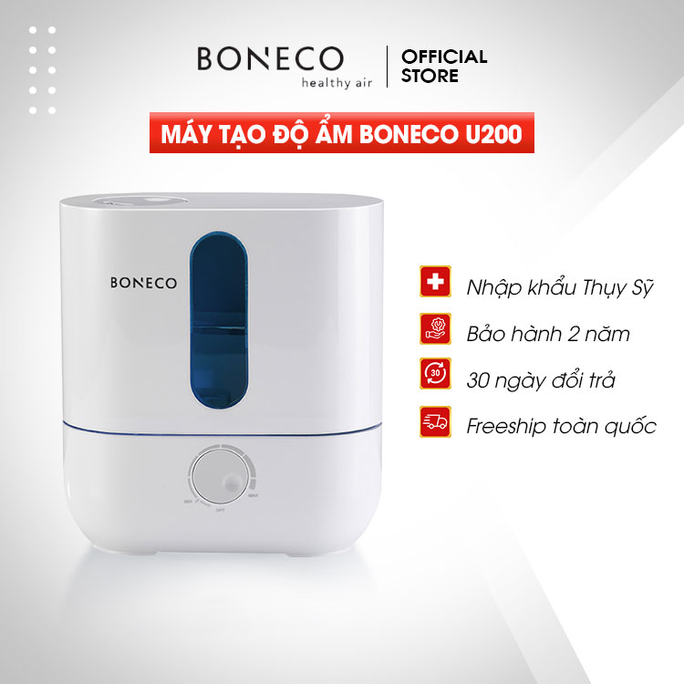 MÁY PHUN SƯƠNG TẠO ẨM CAO CẤP BONECO U200 1. THÔNG SỐ KỸ THUẬT CÔNG SUẤT TIÊU THỤ 20 W KÍCH THƯỚC 24 x 12 x 26.3 cm TRỌNG LƯỢNG 1.8 kg SẢN LƯỢNG ĐỘ