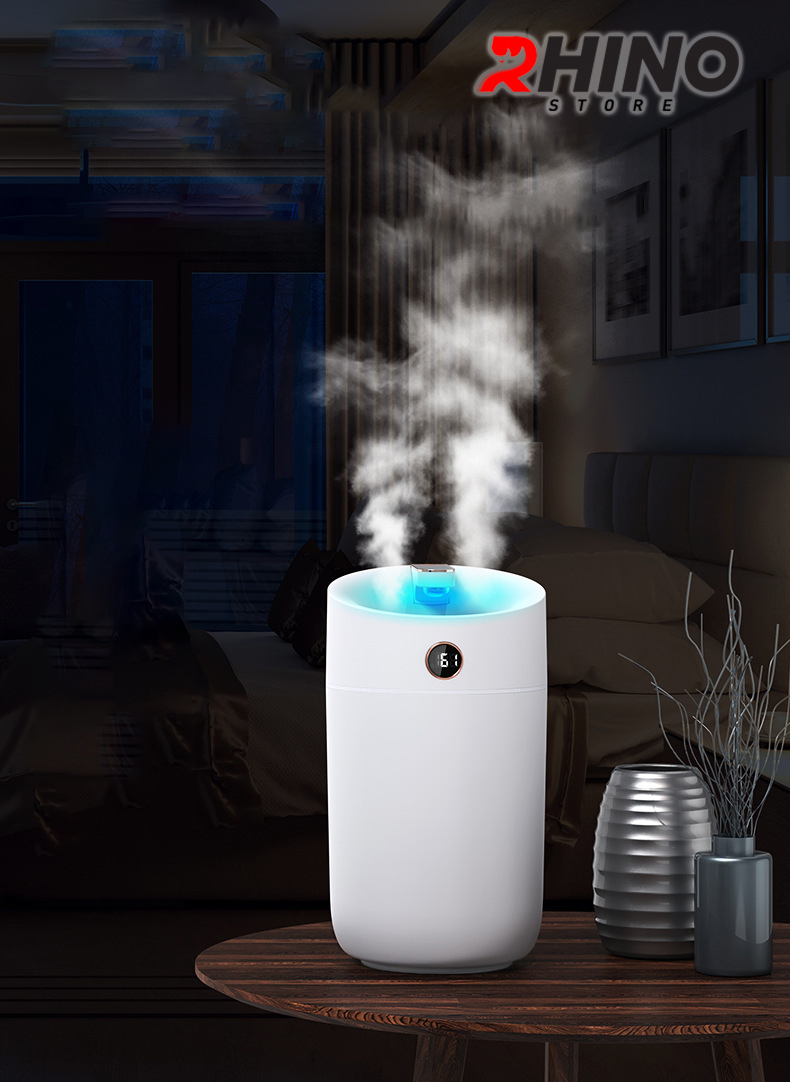 ✨Máy phun sương tạo ẩm cỡ lớn Rhino H801 3000ml, 2 lõi phun, tích hợp đèn 7 màu, dung tích lớn cho không gian rộng - Hàng chính hãng