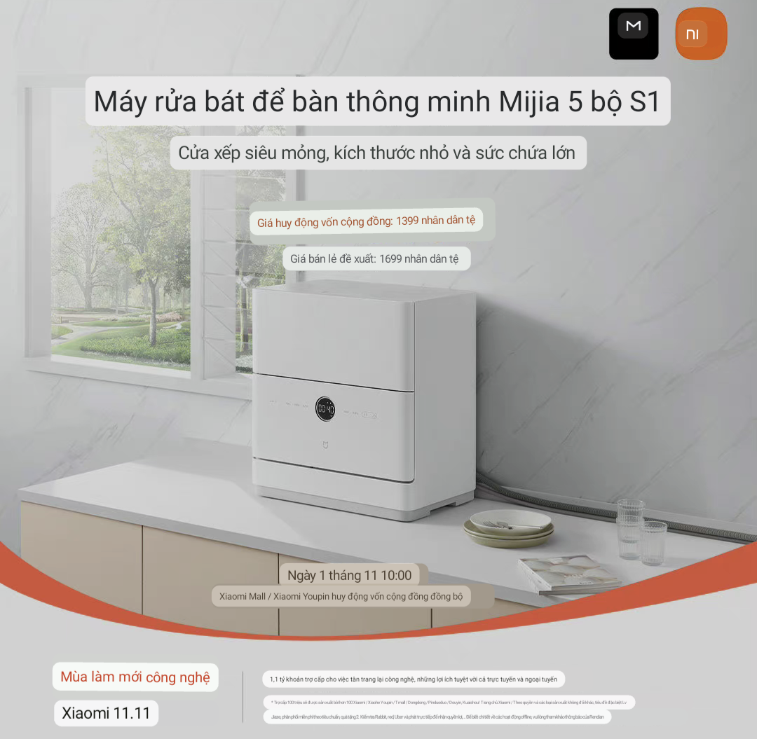Sau thanh công của máy rửa bát xiaomi mijia S1 15 bộ , Xiaomi đã ra mắt Máy rửa bát thông minh Mijia S1 12 bộ. Cánh cửa thông minh có thể tự động đóng mở; cửa sẽ mở