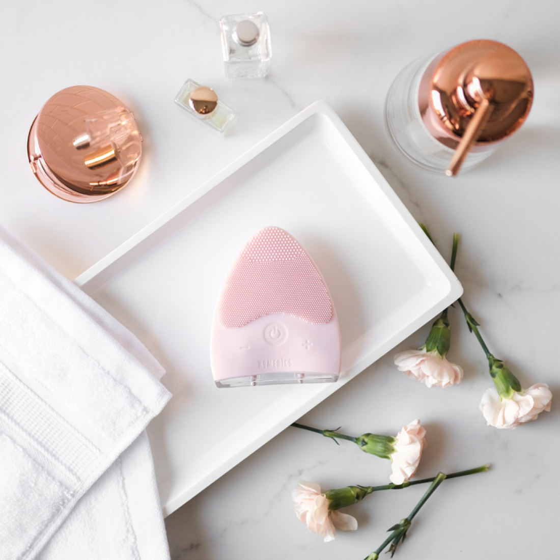 Blossom Facial Silicone Cleanser – HoMedics FAC-310 – THE BEST FACIAL CLEANSER MODEL: FAC-310 Máy rửa mặt Silicone kháng khuẩn công nghệ siêu âm FAC-310 Giới thiệu Blossom, bàn chải làm sạch da mặt tốt