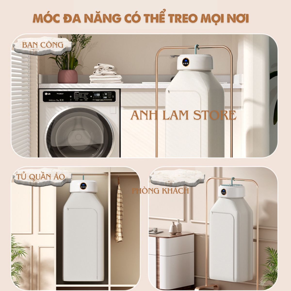 ĐẶC ĐIỂM NỔI BẬT: - Công dụng: làm khô nhanh quần áo, loại bỏ mùi hôi khó chịu, bụi bẩn trên quần áo. - Sử dụng bộ phát điện ổn định PTC, tiết kiệm điện. -