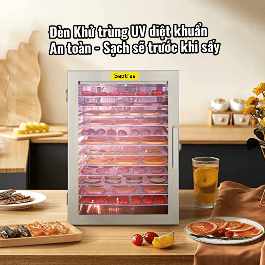 Máy sấy thực phẩm chuyên nghiệp 59 lít, 10 khay Thương hiệu Mỹ Septree cao cấp ST-01 Máy sấy thực phẩm 10 khay đang là sản phẩm được các nhà hàng hay các bà nội