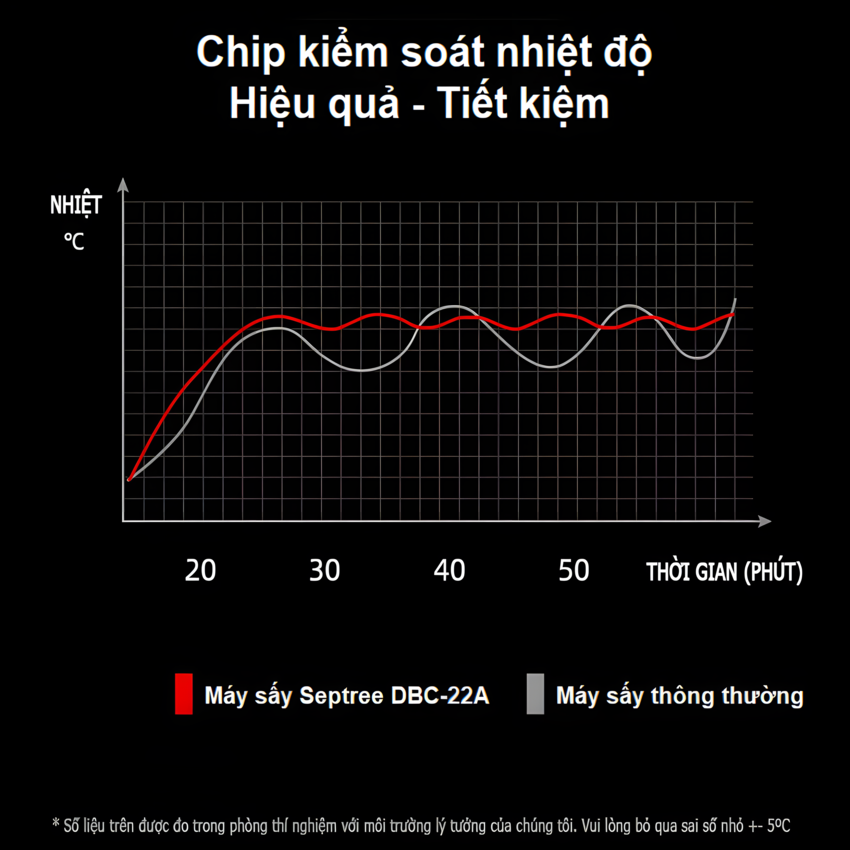 - Nâng cấp động cơ 100% đồng nguyên chất, hệ thống nhiệt và 3 quạt mạnh hơn giúp sấy khô nhanh hơn Sấy đa dạng các loại hoa quả, thực phẩm: Máy sấy Septree 22 khay, có phạm vi nhiệt độ sấy vào khoản từ 20 độ C đến 90 độ C, có thể sử dụng để sấy khô, sấy dẻo hầu hết các loại nông sản, hoa quả, thực phẩm có kích thước phù hợp với công suất thiết kế của máy: