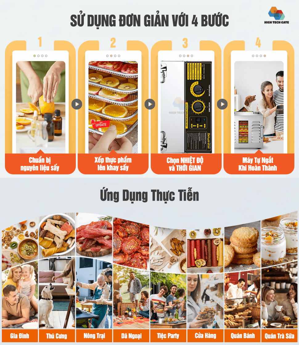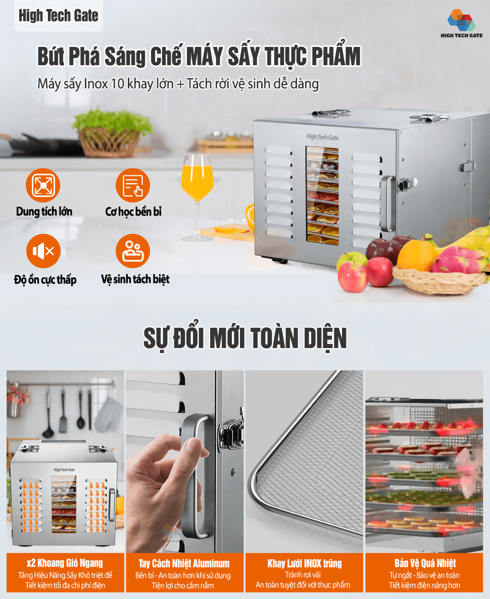 Máy sấy thực phẩm inox HTG-ST01 Sấy khô hoa quả, trái cây, thịt cá rau củ, đa năng Tiện ích nhỏ gọn cho mỗi gia đình Việt, tự tay chế biến các món ăn ngon
