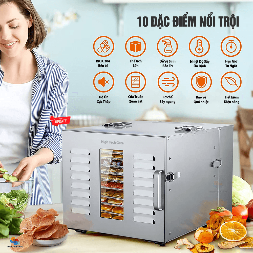 ✨Máy sấy thực phẩm inox HTG-ST01 sấy khô hoa quả, trái cây, thịt cá rau củ, đa năng, 10 khay sấy inox 304, dung tích lớn, hàng chính hãng