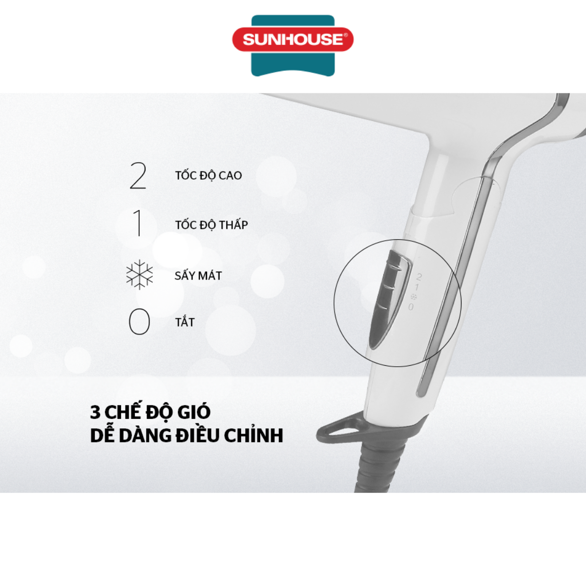 • Máy sấy tóc Sunhouse với màu trắng trang nhã, kiểu dáng trẻ trung, đẹp mắt