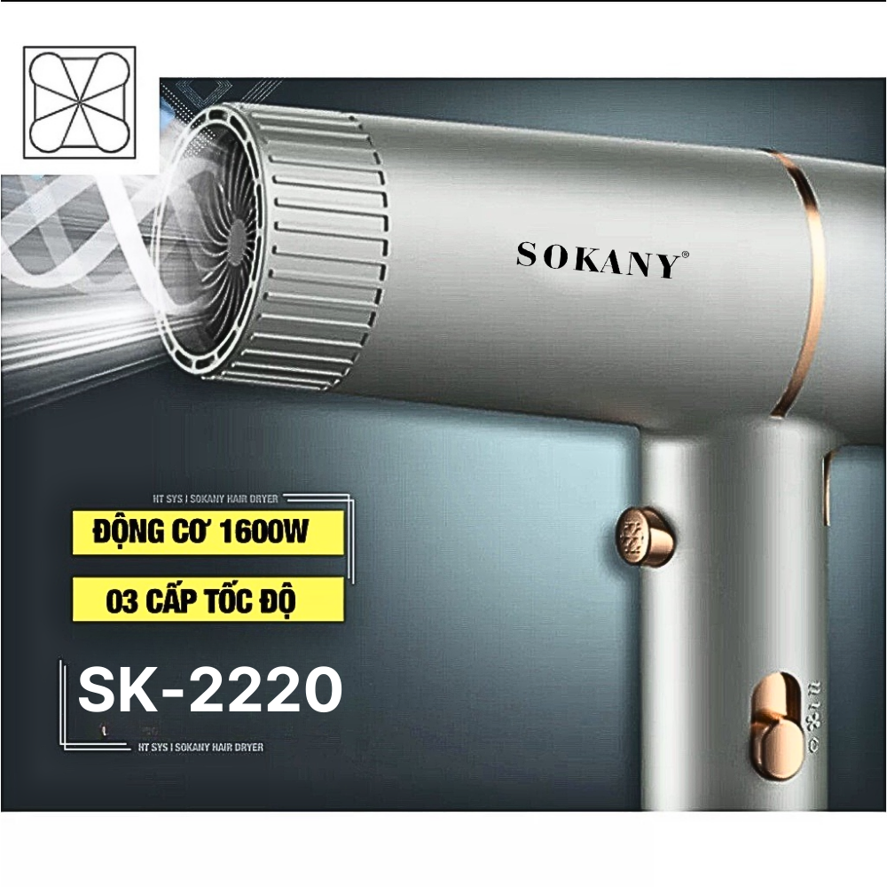 ✨Máy sấy tóc 2 chiều nóng lạnh SOKANY công suất 1600W, tạo ion chăm sóc tóc, tạo kiểu, SK-2220 - HÀNG CHÍNH HÃNG
