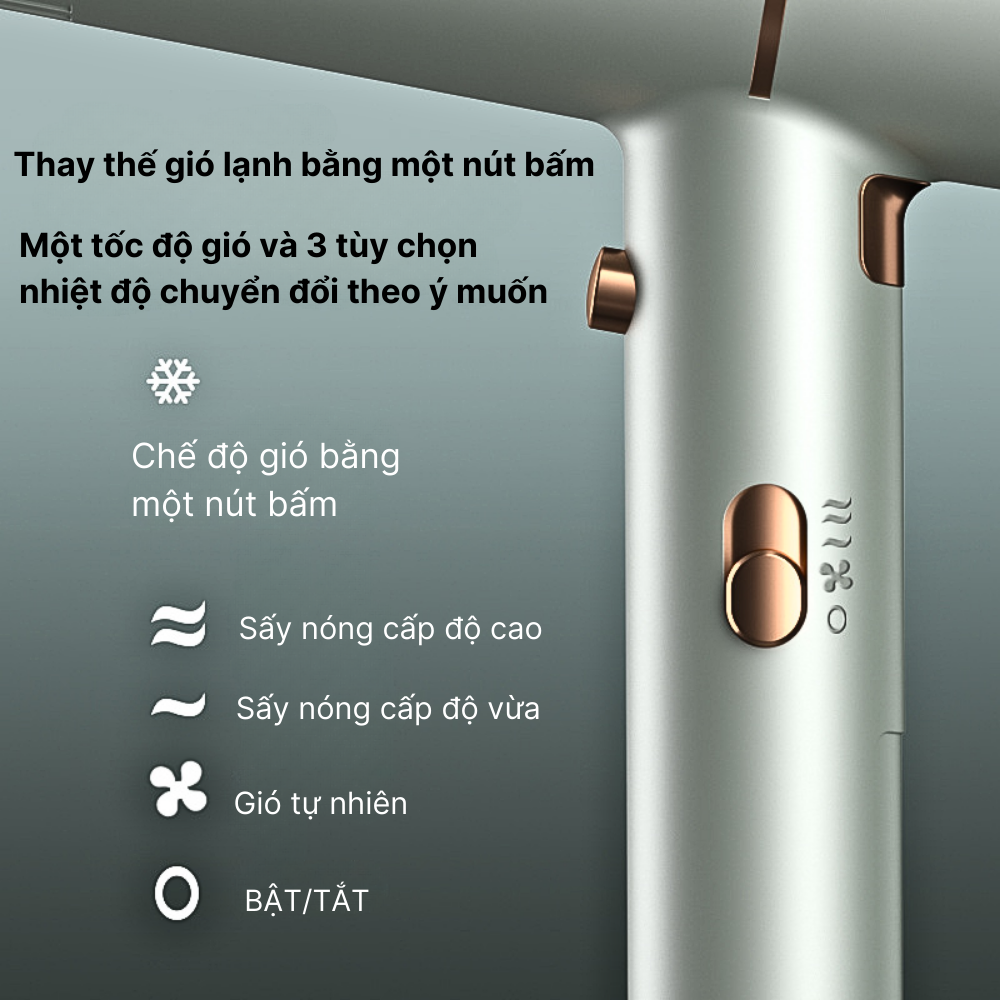 - Điều chỉnh nhiệt độ thông minh với 3 chế độ nhiệt (mát, ấm, nóng), duy trì ổn định khi sử dụng.