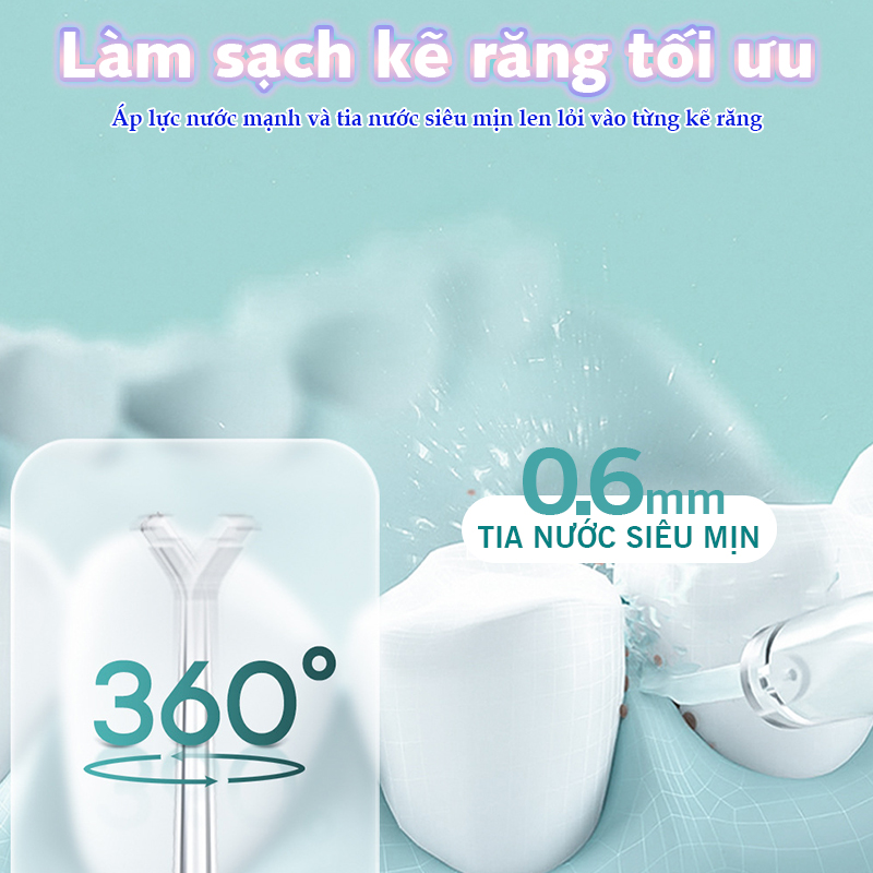 - Tia nước mịn 0.6mm, làm sạch thức ăn trong kẻ răng
