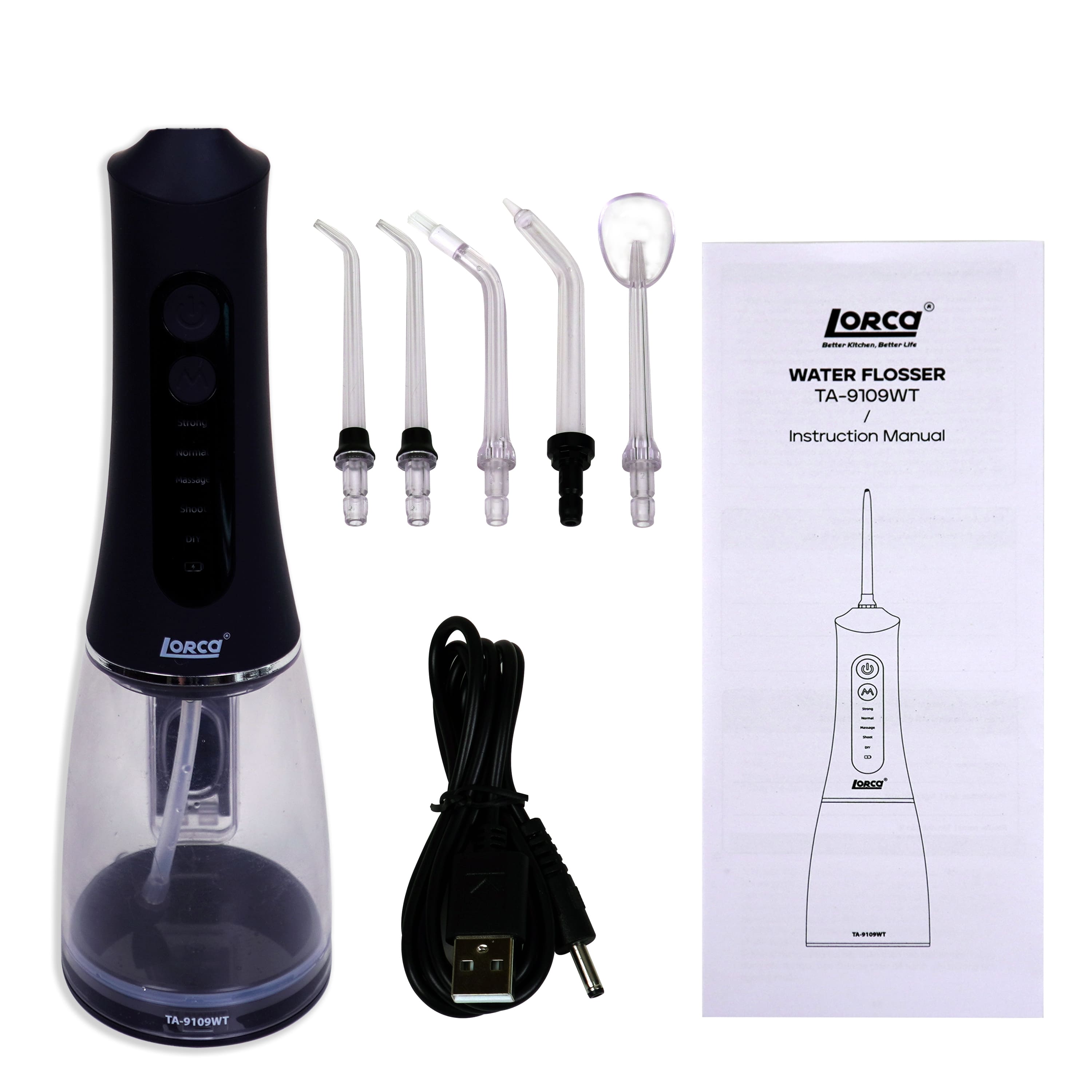 ✨Máy Tăm Nước Cầm Tay Chính Hãng Lorca TA 9109WT Vệ Sinh Răng Miệng, Bộ 5 Đầu Tăm, 5 Chế Độ Sử Dụng