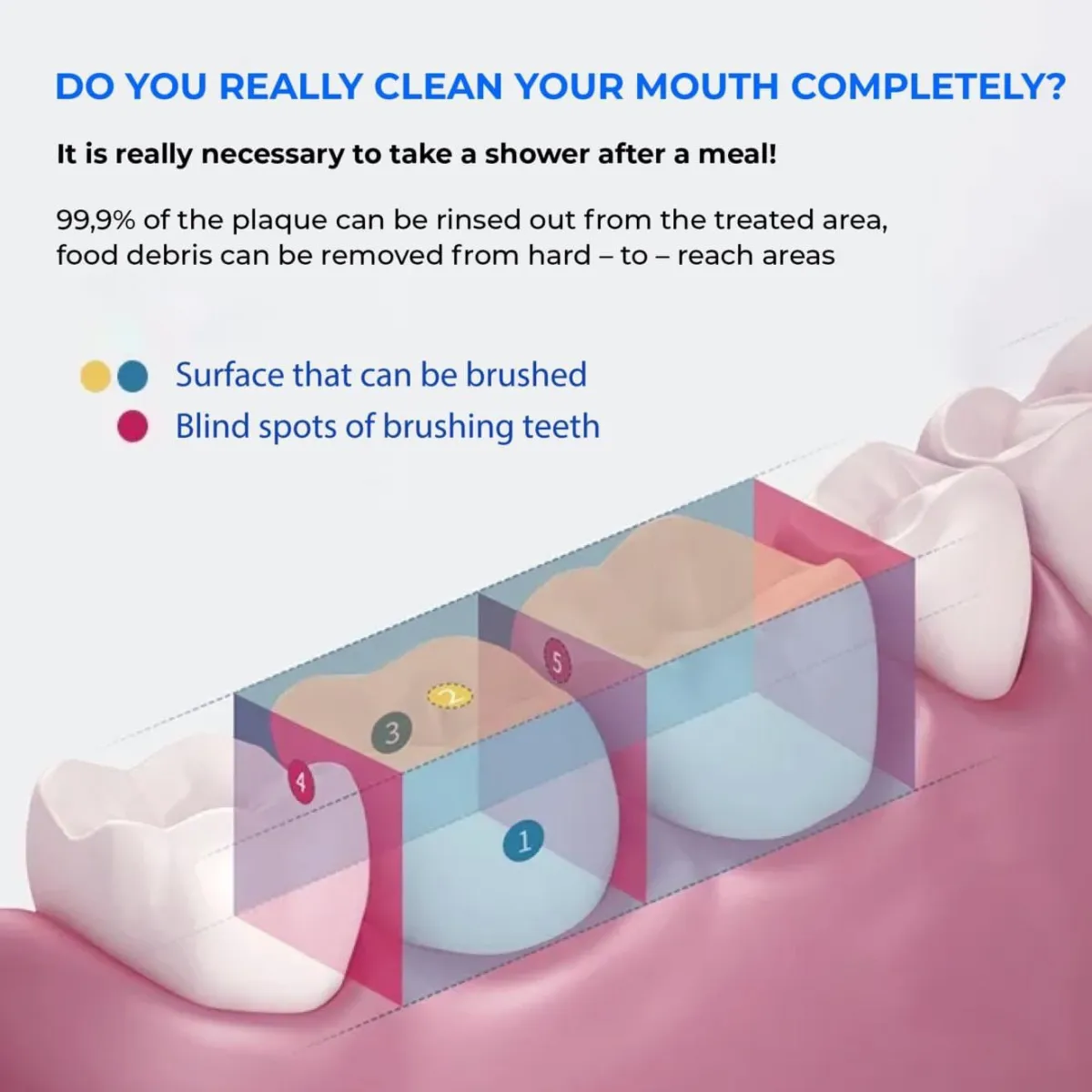 - Đầu vòi xoay 360° có thể dễ dàng tiếp cận những vị trí khó làm sạch trong miệng của bạn