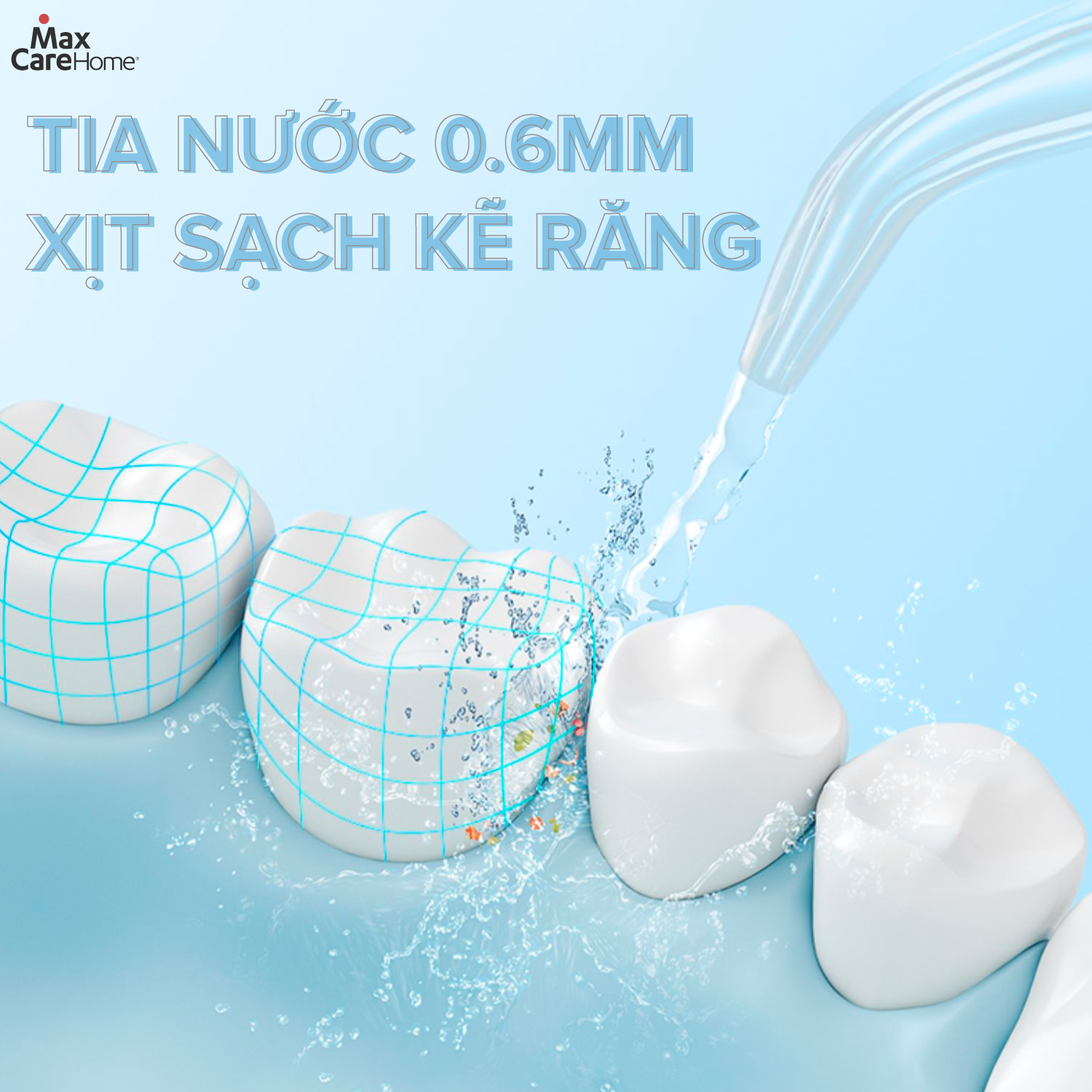 TIA NƯỚC SIÊU NHỎ XỊT SẠCH KẼ RĂNG NHANH CHÓNG Đường kính đầu tăm máy tăm nước Maxcare M1Pro siêu nhỏ, chỉ 0.6mm tạo ra các tia nước mạnh và mảnh, đầu phun xoay 360° làm