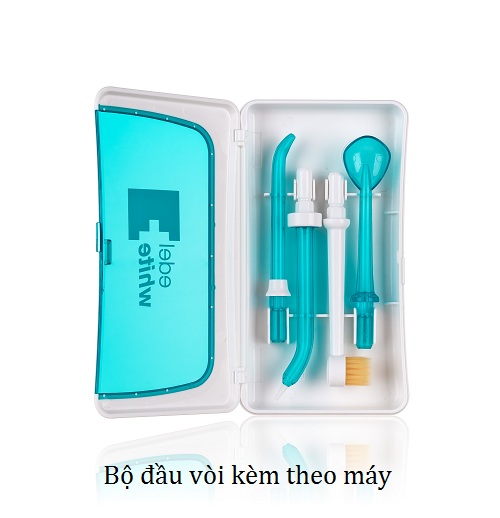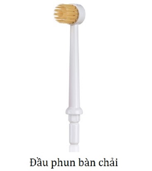 - 4 đầu tip: 1 đầu bàn chải răng, 1 đầu vệ sinh lưỡi, 1 đầu phun nướu, 1 đầu phun áp lực