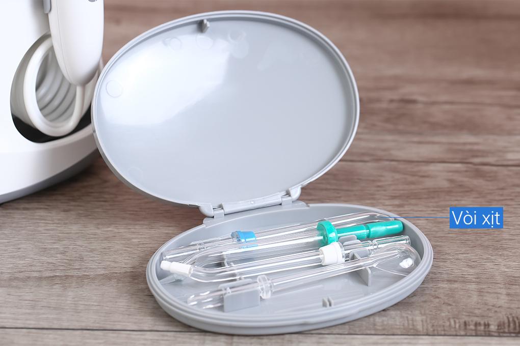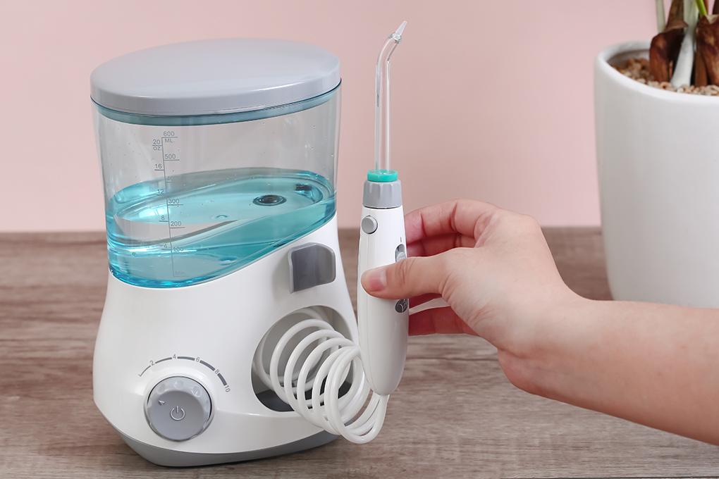 Máy tăm nước dùng trong gia đình Dung tích bình chứa nước 600ml Điện áp 100-240V Tần số 50/60Hz Công suất 18W Gồm 6 đầu tăm 10 mức áp lực nước