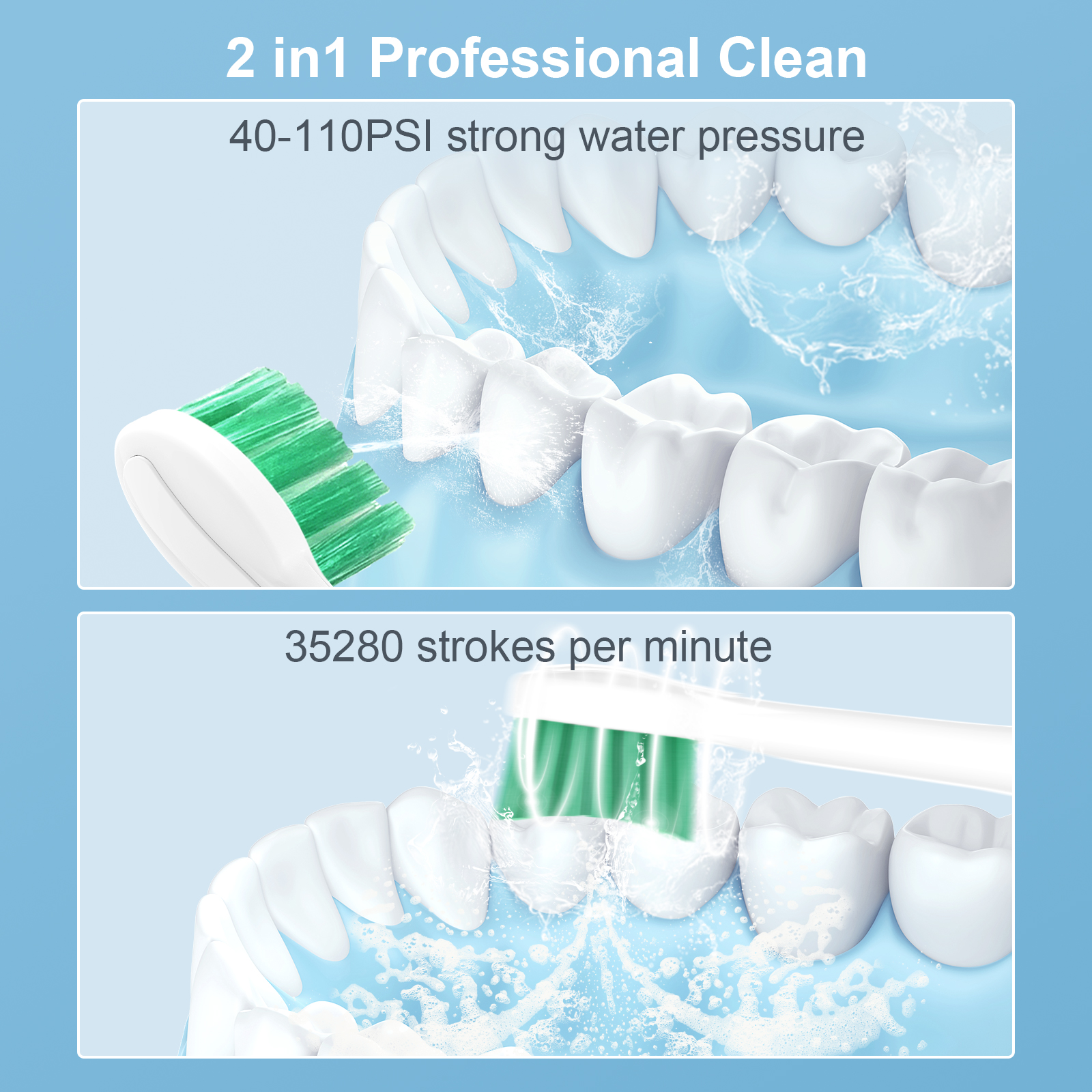 Thiết kế kép 2 trong 1, vừa là bàn chải vừa là máy tăm nước, cực kỳ tiện lợi