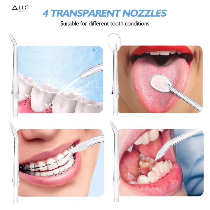 Máy tăm nước dùng trong gia đình Dung tích bình chứa nước 600ml Điện áp 100-240V Tần số 50/60Hz Công suất 18W Gồm 6 đầu tăm 10 mức áp lực nước