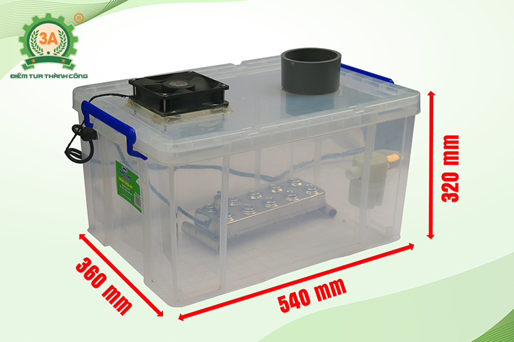 Máy tạo ẩm nhà yến 3A260W có kích thước nhỏ gọn, phù hợp với nhà nuôi yến có diện tích trung bình từ 25 – 35m2. Ngoài ra, với công suất quạt 10w nên đảm bảo việc thổi khói nước ra khắp nhà yến, hơi nước không đọng lại trên sàn gây mất vệ sinh.