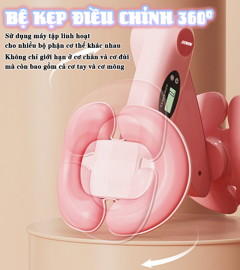 Kiểu sáng đẹp, màu sắc đa dạng: Xanh lá, xám, hồng, xanh dương, tím Ưu điểm của máy tập cơ chân, cơ đùi Nikio NK-06C: Bệ kẹp bọc nhựa TPR cao cấp Máy tập cơ chân, cơ đùi Nikio NK-06C được thiết kế với bệ kẹp bọc nhựa TPR cao cấp, giúp tăng độ bám và không gây đau chân khi tập luyện. Chất liệu TPR không chỉ bền bỉ mà còn mang lại cảm giác thoải mái tối đa cho người sử dụng. Tích hợp bộ đếm thông minh Máy tập cơ chân Nikio NK-06C được trang bị bộ đếm thông minh với 3 chế độ khác nhau: số lần tập, thời gian tập và lượng calo tiêu thụ. Điều này giúp người dùng dễ dàng theo dõi tiến trình tập luyện và điều chỉnh kế hoạch phù hợp để đạt được hiệu quả tốt nhất. Bệ kẹp có thể điều chỉnh 360 độ Một trong những điểm nổi bật của máy tập cơ đùi Nikio NK-06C là bệ kẹp có khả năng điều chỉnh 360 độ. Điều này cho phép bạn sử dụng máy tập này linh hoạt cho nhiều bộ phận cơ thể khác nhau, không chỉ giới hạn ở cơ chân và cơ đùi mà còn bao gồm cả cơ tay và cơ mông. Thiết kế khoa học với cấu trúc tam giác Máy tập cơ đa năng Nikio NK-06C được thiết kế với cấu trúc tam giác, đảm bảo sự ổn định và an toàn tuyệt đối trong suốt quá trình tập luyện. Thiết kế này giúp người dùng yên tâm hơn khi sử dụng, giảm nguy cơ chấn thương và tăng hiệu quả tập luyện. Đa dạng bài tập cho cơ thể Máy tập cơ Nikio NK-06C không chỉ giúp bạn tập luyện cơ chân và cơ đùi mà còn hỗ trợ hiệu quả trong việc rèn luyện cơ tay và định hình đường cong của mông. Sản phẩm giúp bạn nhanh chóng sở hữu vóc dáng săn chắc, cân đối và quyến rũ. Kiểu dáng đẹp mắt, màu sắc đa dạng Máy tập cơ chân Nikio NK-06C không chỉ chú trọng vào tính năng mà còn sở hữu thiết kế đẹp mắt với nhiều màu sắc đa dạng như xanh lá, xám, hồng, xanh dương và tím. Người dùng có thể dễ dàng lựa chọn màu sắc yêu thích để tăng thêm phần hứng khởi khi tập luyện. Đối tượng nào nên dùng máy tập cơ chân Nikio NK-06C: