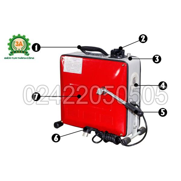 [TẶNG 1 ĐÔI GĂNG TAY] Máy thông cống, thông tắc lò xo 3A500W tối đa 30M. Bộ phụ kiện đi kèm: 12,5m dây lò xo phi 16, 6 đầu thông 01 mở dây lò xo