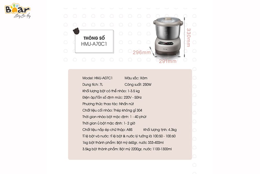 Review Máy nhồi bột, nhào bột ủ bột Bear 7L A70C1 chính hãng