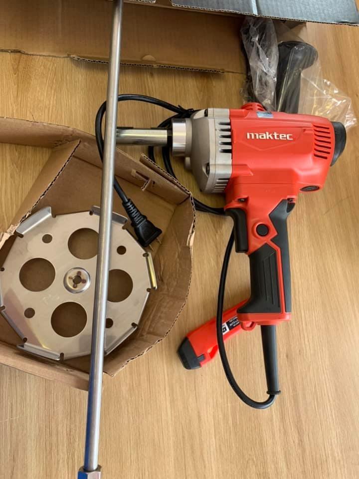 Trong hộp có: Máy trộn sơn Maktec MT660X, Tay cầm, lưỡi trộn sơn.