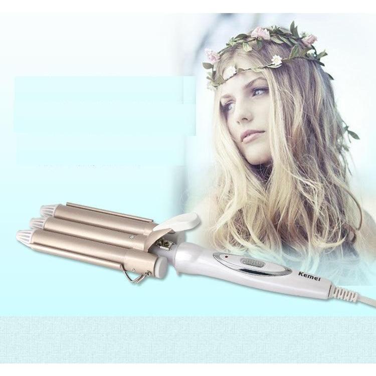 ✨Máy Uốn Tóc Chuyên Nghiệp Kemei KM-1010 3 Trục Uốn Có Mức Điều Chỉnh Nhiệt
