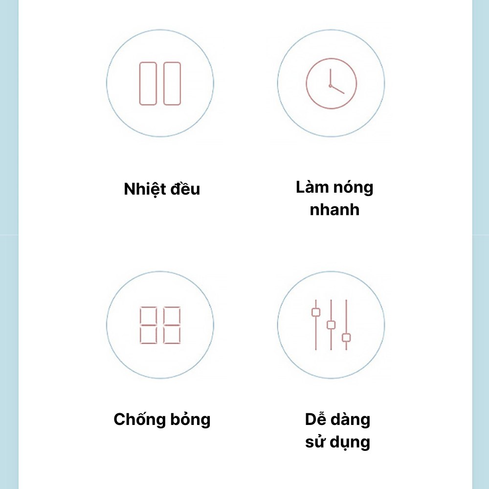 - Làm nóng nhanh, chưa đến 1 phút đã có thể sử dụng.