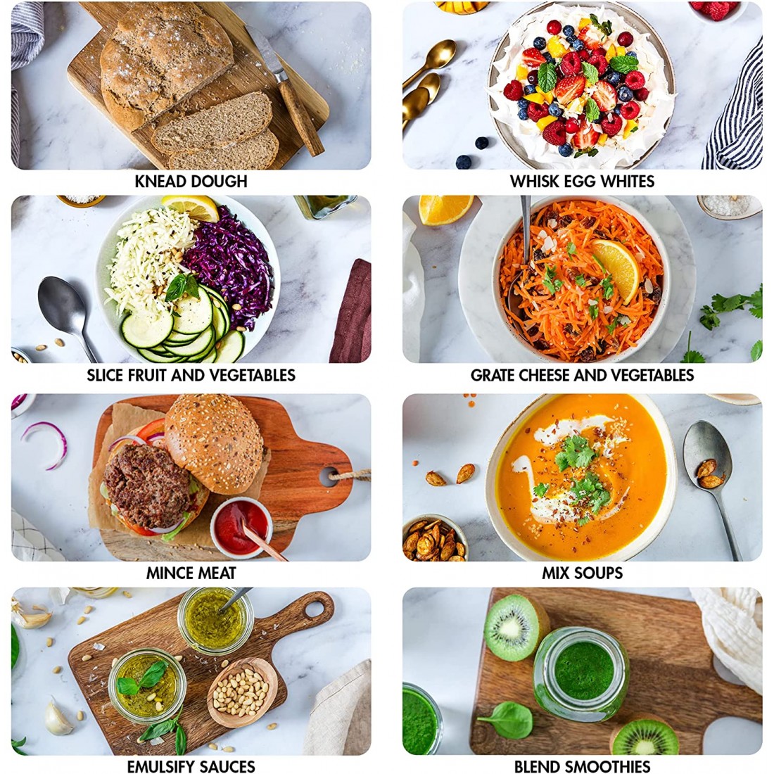 Master Perfect Plus giúp làm bánh và nấu ăn dễ dàng hơn. Công suất khoẻ vô địch 1000 W Cài đặt tốc độ 7 tốc độ + xung Đa chức năng: Trộn, đánh, khuấy, nạo,