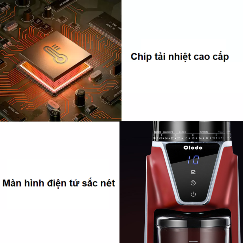 Mua tại TiktokMáy xay hạt cà phê Espresso thương hiệu Olodo - Đức cao cấp CG-001 tích hợp 31 chế độ xay Hiện nay, cà phê là thức uống không thể thiếu của nhiều người, nhưng làm sao để thưởng thức được ly cà phê thơm ngon do chính tay mình làm. Với máy xay cà phê Olodo CG-001 bạn sẽ dễ dàng thưởng thức những tách cà phê thơm ngon, chỉ mất vài phút cùng thao tác đơn giản, máy sẽ nhanh chóng nghiền hạt cà phê thành bột mịn theo đúng sở thích của bạn. Máy xay cà phê Olodo CG-001 được thiết kế sang trọng, hiện đại, máy nhỏ gọn và tinh tế sẽ đáp ứng được nhu cầu của các hộ gia đình, quán cà phê nhỏ hay cho văn phòng. Hệ thống nấc điều chỉnh cỡ xay linh hoạt, tiện dụng cho mọi nhu cầu pha chế