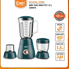-  Máy xay sinh tố Comet CM9979 có kiểu dáng hiện đại, màu sắc sang trọng trẻ trung, phù hợp với mọi gian bếp.  -  Hoạt động với công suất 450 W cực mạnh, động