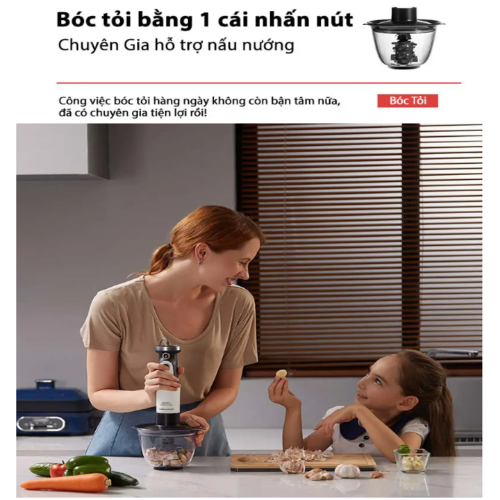 - Đặc biệt, cối xay thịt của máy xay cầm tay đa năng cao cấp Morphy Richards với thiết kế lưỡi dao sắc bén giúp cho việc xay thịt nhanh chóng và dễ dàng hơn bao giờ hết. Điểm cải tiến so với các loại máy xay cầm tay khác trên thị trường đó chính là máy tích hợp dụng cụ bóc tỏi đa năng Thiết kế cầm tay hiện đại