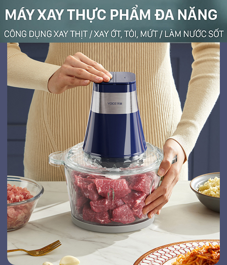 ✨Máy Xay Thịt 2 Lưỡi Kép Yoice Y-JR65 (2L) - Hàng chính hãng