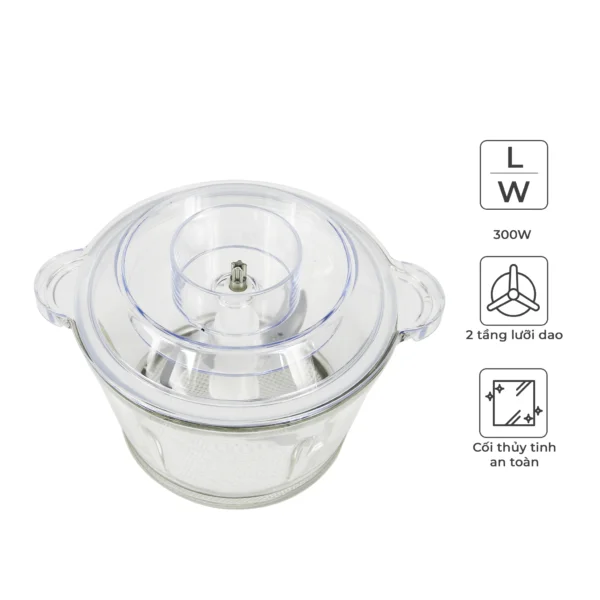 - Công suất 300W, lưỡi dao 2 tầng sắc bén bằng inox 420 bền bỉ, không han gỉ, xay nhuyễn nhanh chóng.