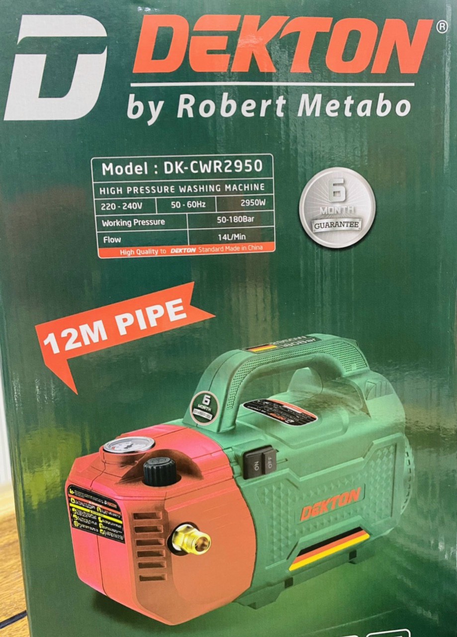 - Máy xịt rửa Dekton CWR2950 với khả năng xịt rửa lưu lượng lớn, giúp bạn nhanh chóng làm sạch các khu vực cần thiết trong thời gian ngắn.